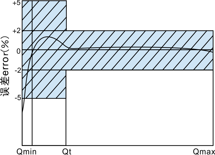 a. 从包括最小流量(Qmin)至不包括分界流量(Qt)的低区:±5%